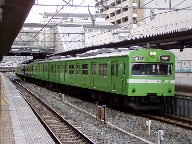 ▲103系「試運転」(放出駅)