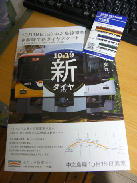 新ダイヤの案内と中之島線時刻表の配布が始まりました。