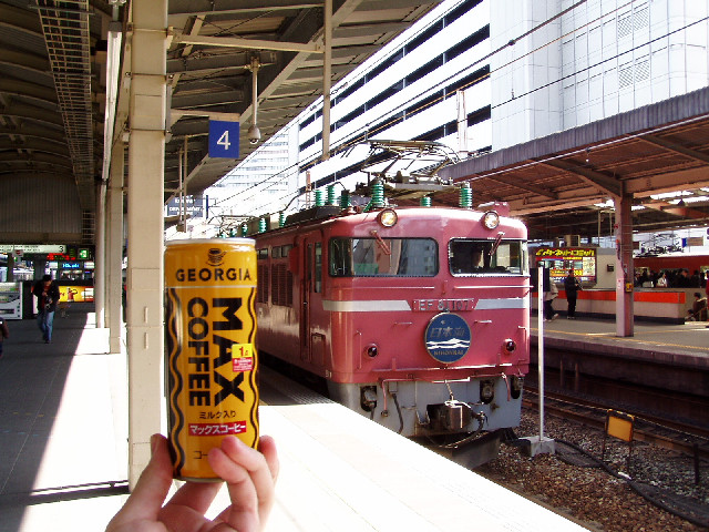 大阪駅で日本海が来たのでMAXコーヒーと共に撮影(`・ω・´)