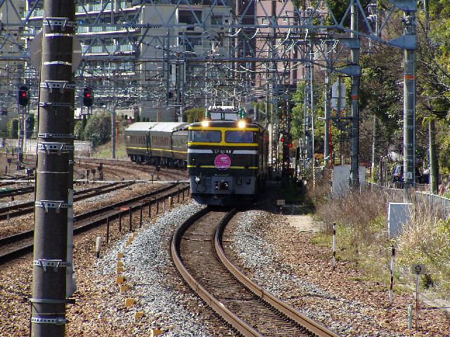 山崎カーブ方向でトワイライトエクスプレスを狙う為、ホームの端へ移動