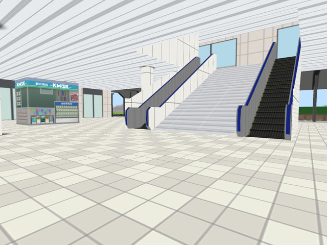 駅舎1階に何も無く殺風景だったので売店と2階への階段とエスカレーターを設置しました。
